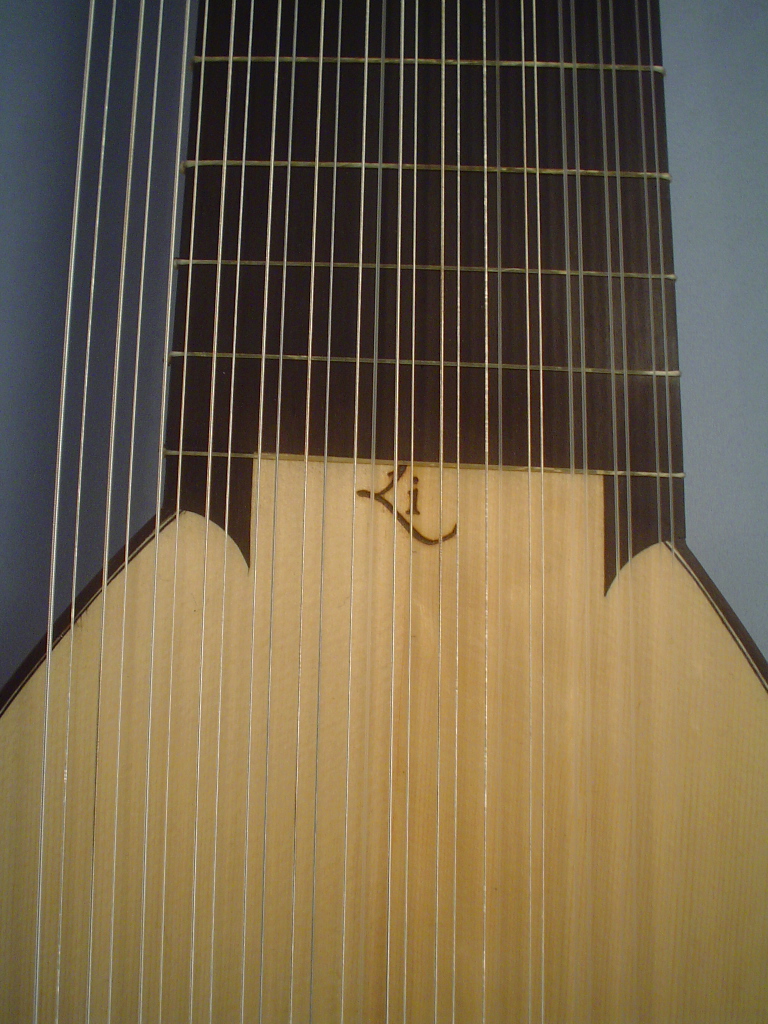 Abbiamo potuto effettuare personalmente il rilevo di questo strumento, appartenente ad un collezionista privato italiano. Lo strumento si presenta rimaneggiato, in particolare nella zona della tratta, oggi più corta che in origine. Dall’analisi e dalla misurazione delle parti non rimaneggiate del manico e della tratta abbiamo potuto ipotizzare l’assetto e le lunghezze vibranti originali dello strumento, che riproponiamo per la costruzione di arciliuti e tiorbe. Il guscio a nove doghe, dalle linee eleganti e raffinate, è piuttosto capiente ed era realizzato sullo strumento originale in legno scuro, forse palissandro di difficile identificazione.